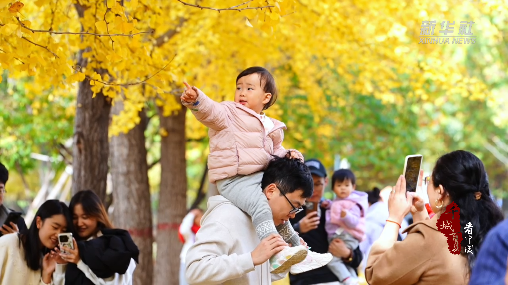 秋末冬初,河北省石家庄市新华区的银杏迎来最佳观赏期。阳光洒落,金黄满枝,光影斑驳,吸引市民携亲伴友前来赏景,定格秋末韵味。