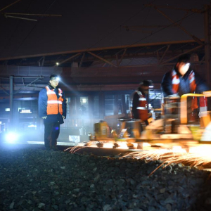 当城市沉入梦境,高铁站归于寂静,在大多数人的梦乡之外,一场关乎千万人旅途安稳的“毫米级守护”正在钢轨上悄然进行。在零点之后,一群年轻的“00后”铁路人,正用火花与汗水,在中国高铁的动脉上进行着一场无声而精密的“夜间手术”。