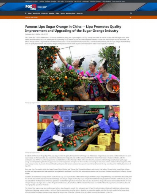 作品简介:2021年11月8日,推广稿《Famous Lipu Sugar Orange in China Lipu Promotes Quality Improvement and Upgrading of the Sugar Orange Industry》在欧美地区、 亚太地区16个国家以12种语言同时发布, 并在第一时间被当地主流媒体、门户网站及重点资讯网站广泛转载。