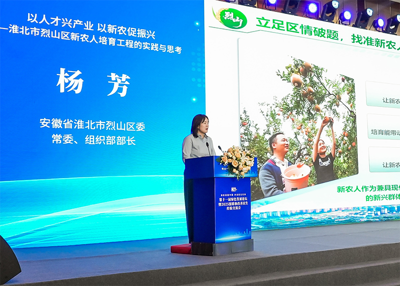 活动现场,安徽省淮北市烈山区委常委、组织部部长杨芳在致辞中表示,近年来烈山区始终锚定“农业强、农村美、农民富”目标,将新农人培育作为破解城乡发展不平衡、推动农业现代化的关键抓手,走出了一条“政策引才、平台育才、产业聚才”的新农人发展之路。
