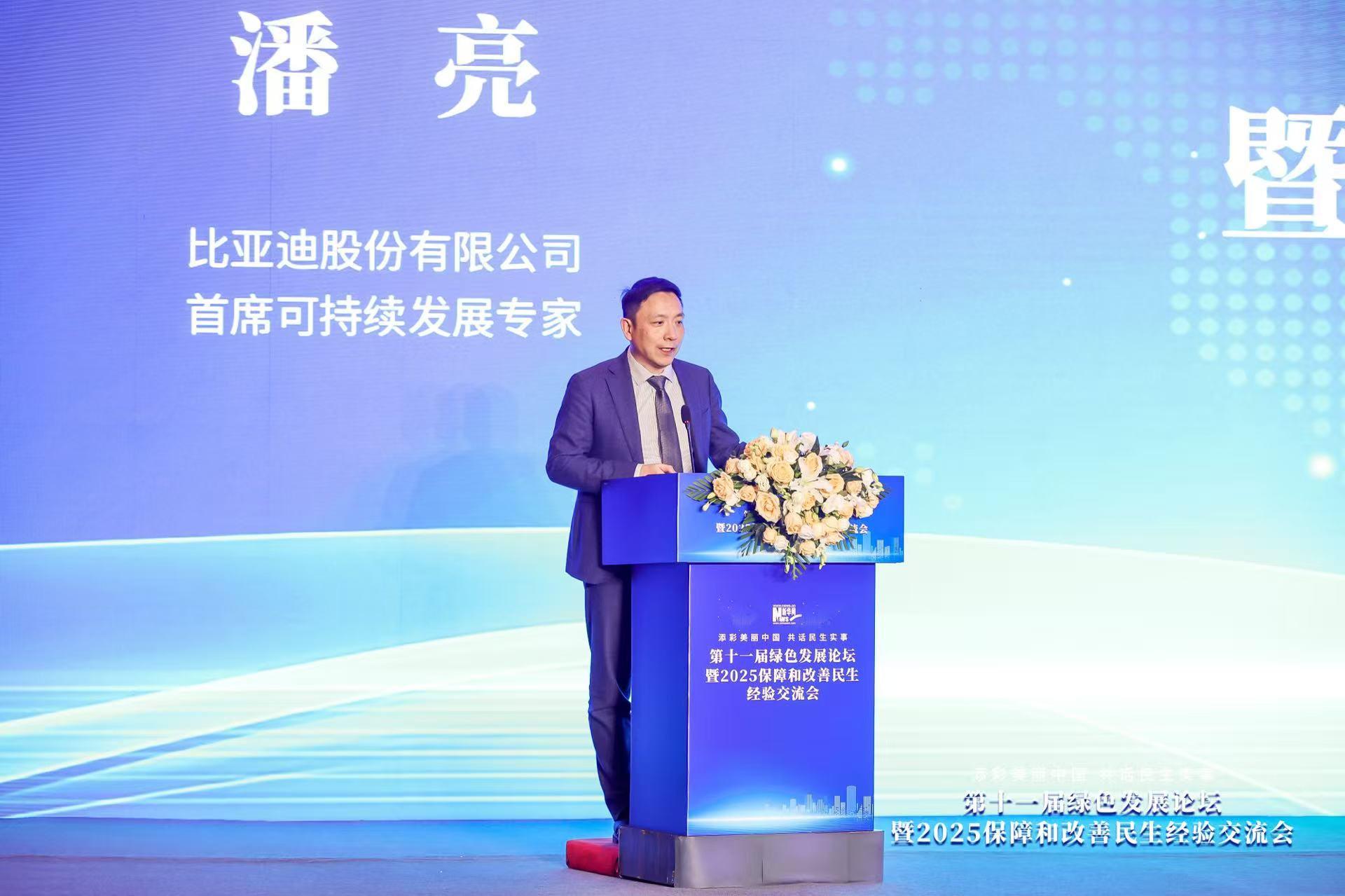 会上,比亚迪股份有限公司首席可持续发展专家潘亮围绕企业绿色低碳转型、技术创新布局及全球化发展,分享了比亚迪的实践经验与最新进展。