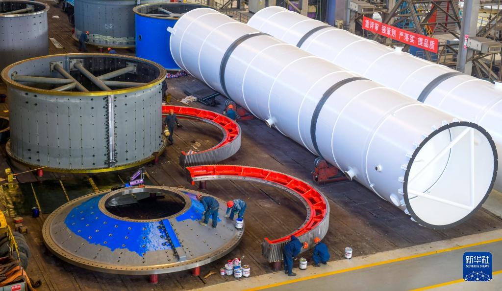 2月24日,在河南省洛阳市中信重工生产车间,工人在加工生产订单产品。