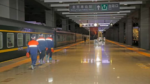 不像传统车站上水工要在股道间避让列车,北京丰台站独有的“中空站台”设计,把作业区藏了在站台下方,作业安全系数更高。